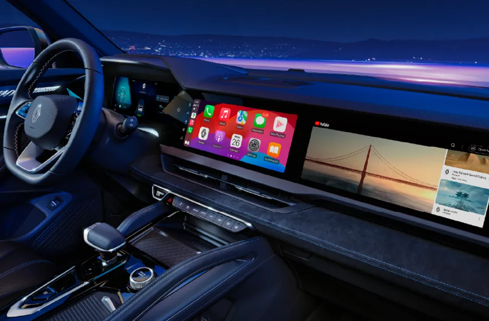 El New Renault Koleos redefine la experiencia digital con el sistema OpenR, compuesto por tres pantallas de 12.3” (piloto, multimedia central y copiloto). Compatible con Android Auto™ y Apple CarPlay™ inalámbricos, permite streaming en la pantalla del pasajero (YouTube, Disney+, Prime Video).